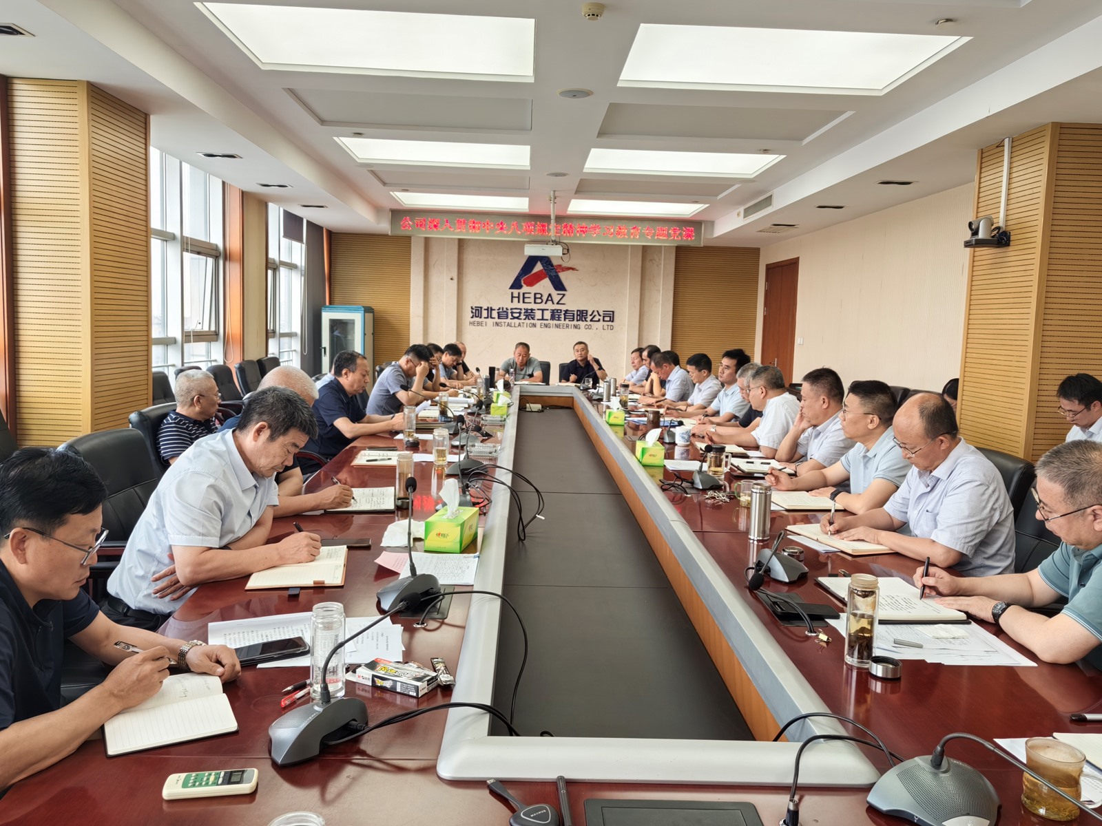 2025年9月3日,為紀(jì)念中國(guó)人民抗日戰(zhàn)爭(zhēng)暨世界反法西斯戰(zhàn)爭(zhēng)勝利80周年,河北省安裝工程有限公司積極組織職工集中觀看閱兵盛況直播。公司機(jī)關(guān)及各分公司、項(xiàng)目部共計(jì)2000余人通過(guò)多種方式同步參與,共同回顧歷史、緬懷先烈、展望未來(lái)。上午9時(shí),習(xí)近平總書記發(fā)表重要講話,9時(shí)19分大閱兵正式開(kāi)始,公司機(jī)關(guān)及各分公司、項(xiàng)目部會(huì)議室座無(wú)虛席,職工們們整齊地坐在屏幕前,神情莊重地注視著電視畫面。在閱兵式過(guò)程中,